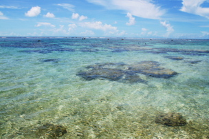 八重山の島の珊瑚礁には、所々に幅100mくらいの水路がある。